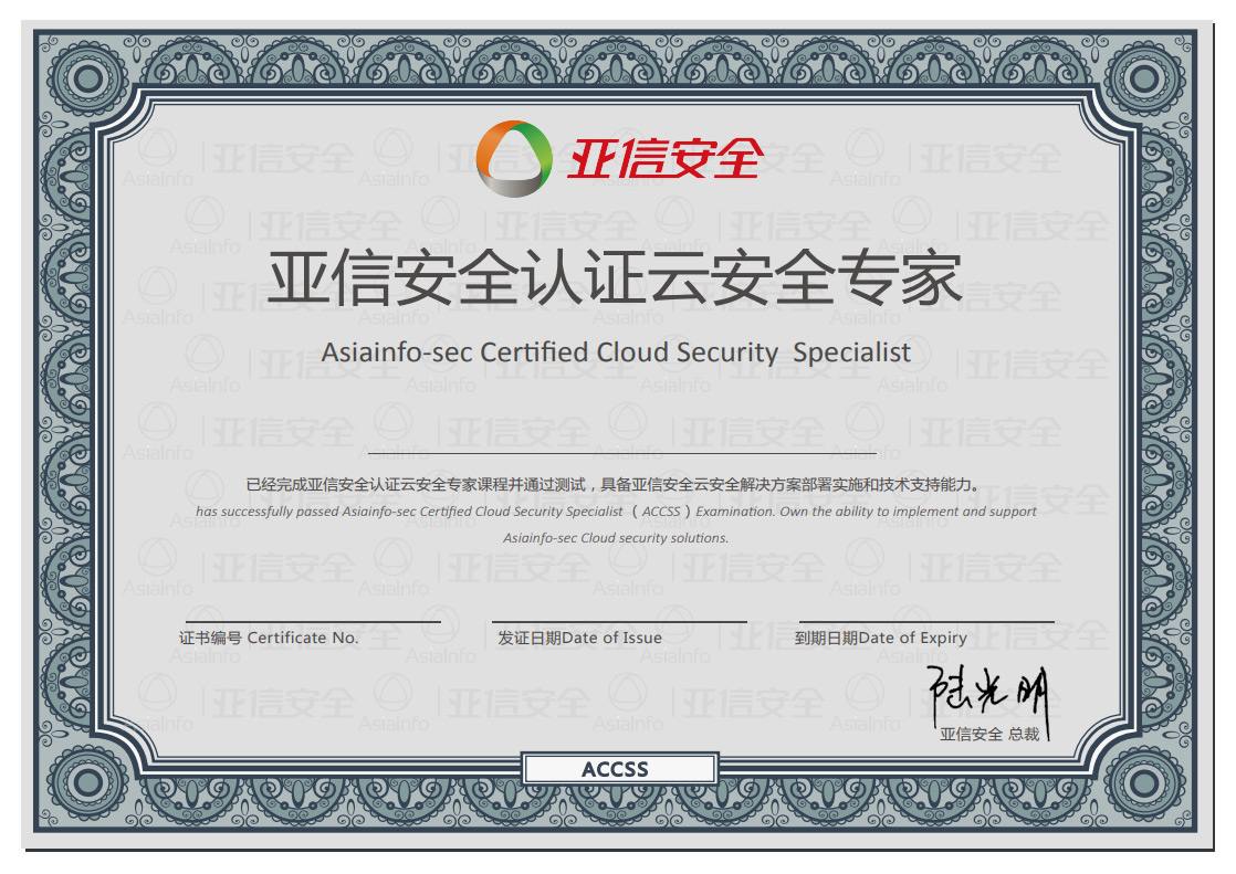 亞信安全認證云安全專家課程(ACCSS,Asiainfo-sec Certified Cloud Security Specialist)